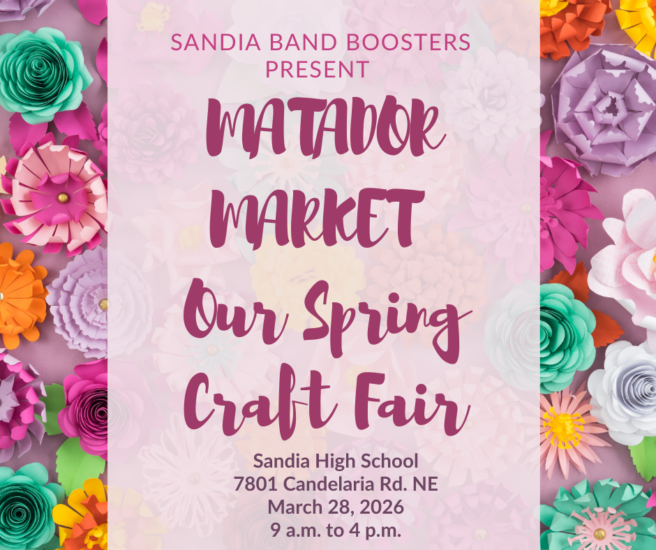 If you have any questions or concerns before the day of the fair, please email craftfair@sandiabandboosters.org